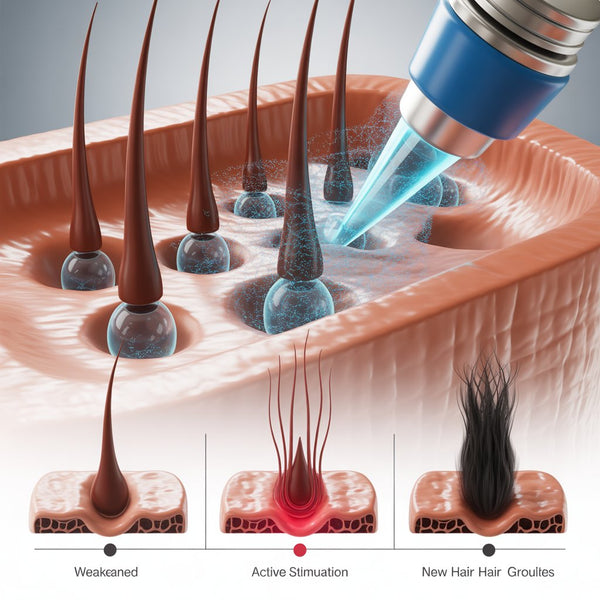 This dual-action hair growth solution combines Minoxidil 5% and Finasteride 0.1% to effectively treat male pattern hair loss. Minoxidil works as a vasodilator to increase blood flow, delivering oxygen and nutrients to hair follicles, while Finasteride blocks DHT—the hormone responsible for follicle shrinkage and hair thinning.